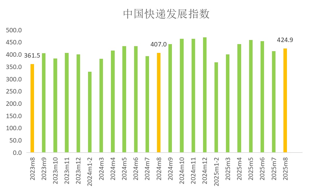 2023年8月-2025年8月中国快递发展指数