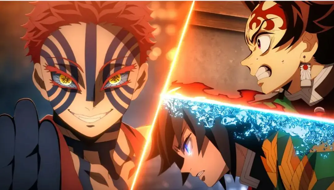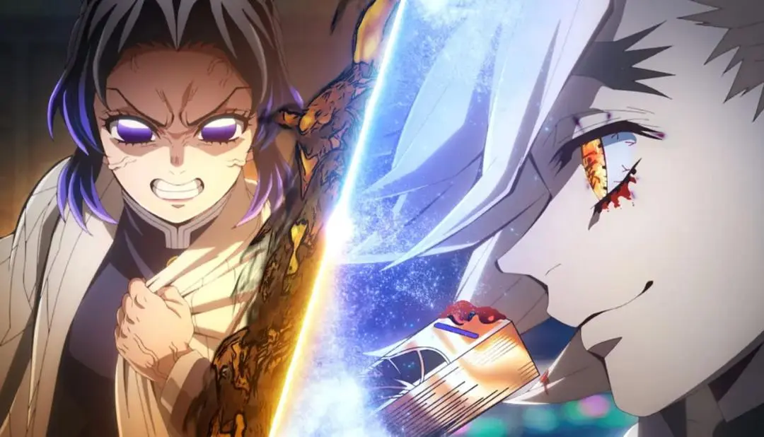 在这部剧场版里,最后三分之一剧情主要展现与猗窝座相关的故事,与其对决的是富冈义勇和炭治郎。在此之前,三分之二的剧情分别是虫柱蝴蝶忍为了给姐姐香奈惠报仇,而和童磨(上弦之贰)展开厮杀的过程;另一组则是我妻善逸与变成鬼的师兄狯岳之间的对抗。